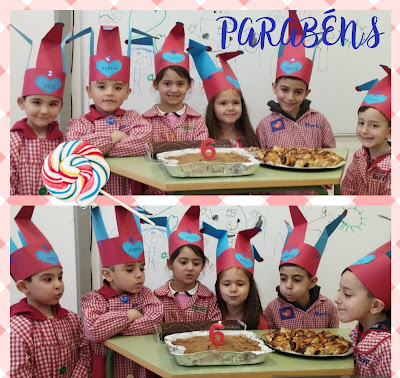 E na clase de cinco anos estiveron de aniversario sete nenos e nenas: Nico, Adrián, Rosa, Kel, Martín, Iago e Bianca, que estaba enferma.